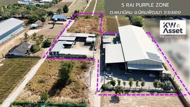 ขายที่ดิน 5 ไร่ พร้อมโรงงาน 1,700 ตรม ผังม่วงลาย ทำเลทองต.พนานิคม อ.นิคมพัฒนา จ.ระยอง