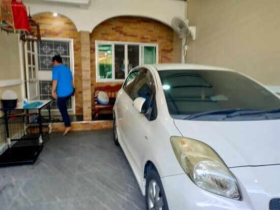 ลักษณะบ้าน : ทาวน์เฮ้าส์ 2 ชั้น มีระเบียง ต่อเติมห้องครัวด้านหลัง ติดตั้งมุ้งลวด