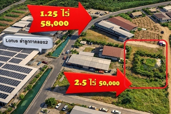 ติดโลตัส ลำลูกกา คลอง2 250ม. สนามบินดอนเมือง ให้เช่าที่ดินติดถนนใหญ่ ลำลูกกา คลอง 2 ใกล้ BTSคูคต หน้ากว้าง 45 เมตร| 2 ไร่ 2 งาน 35ตร.ว.
