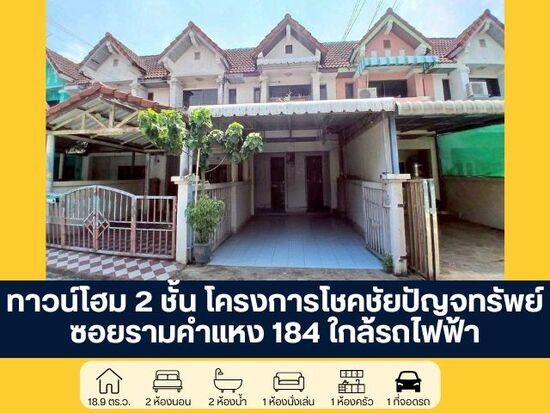 โครงการโชคชัยปัญจทรัพย์ ทาวน์โฮม 2 ชั้น ซอยรามคำแหง 184 ราคาพิเศษเหมาะสำหรับผู้ที่มองหา เพื่อรีโนเวท ทำเลศักยภาพ ติดถนน