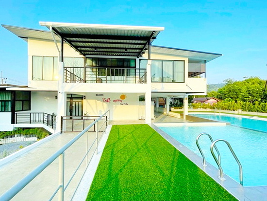 Mansion 2 Storeys 4-5 bed 5-bath pool villa WatNong Takoo 1 km. vacation home in Khao Yai Khanong Phra Pak Chong 900 m. from Khanong Phra fresh market and 1 km. from Wat Khanong Phra Tai Land area 2 rai 800 sq.m. Price 99,998-149,999 B-M. Stunning mountain views private saltwater pool parking for 5-10 cars spacious private garden on Mittraphap Road.