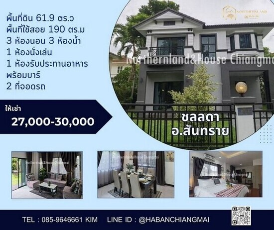 ให้เช่า 27,000-30,000 บาท/เดือน 61.9 ตรว. บ้าน 2 ชั้น #แลนด์แอนด์เฮ้าส์ #แม่โจ้ #สันทราย #รับสัตว์เลี้ยง #ใกล้ม.แม่โจ้ #บ้านปรับปรุงใหม่ทั้งหมด #พร้อมเฟอร์นิเจอร์ครบ #หิ้วกระเป๋าเข้าอยู่ได้เลย