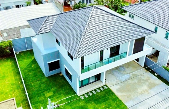 near Harrow Inter Sch 800m. Two-story detached house 4bed 5bath DonMueang Airport 100sq.wa. 252 sq.m. corner house price 83,999B-M prime location near Don Mueang MRT 1 km. on Chang Akat Uthit Road ideal for living with full amenities and pleasant atmosphere