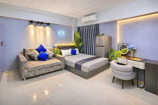 ภายในจัดฟังก์ชันครบ มีโซฟาเบดปรับนอนได้ เตียงขนาด 5 ฟุต โต๊ะเครื่องแป้งพร้อมไฟ LED และที่ชาร์จไร้สาย