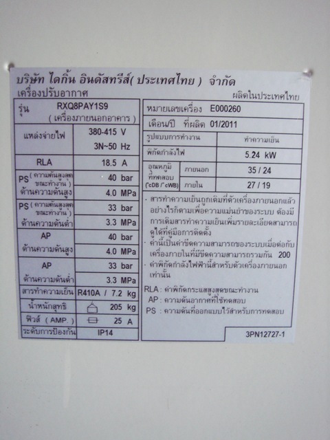 ขาย Condensing ยี่ห้อ DAIKIN ขนาด 70000 BTU