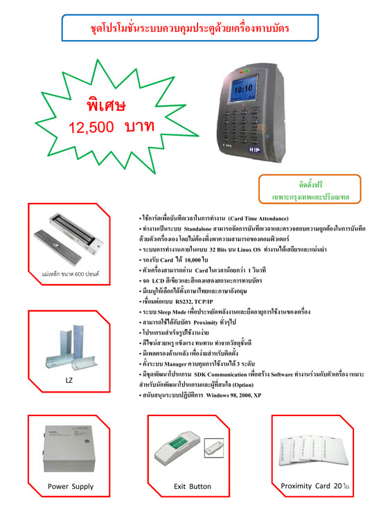 ชุดโปรโมชั่นระบบควบคุมประตูด้วยเครื่องทาบบัตร
