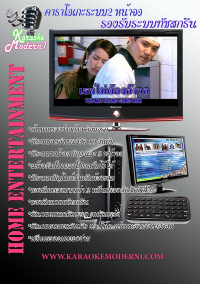 คาราโอเกะสำหรับผู้ประกอบการคาราโอเกะ และความบันเทิงภายในบ้าน ทั่วประเทศไทย ภายใต้สโลแกน"คาราโอเกะของไทยฝีมือคนไทย ถูกใจ ถูกราคา" ด้วยความพึงพอใจกับผลงานที่ลูกค้าไว้วางใจมากกว่า5 ปี ทั้งเรื่องลิขสิทธิ์และการบริการต่างๆที่พร้อมบริการด้วยความเต็มใจ ของทีมงานเพียงท่านติดต่อมาหาเราเรายินดีให้คำปรึกษา
