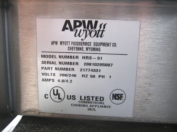 002ขายเครื่องย่างไส้กรอก ยี่ห้อ APW Wyott รุ่น HRS-31 (ของ USA )สภาพ 90% ใช้ไฟ 220v ใช้งานได้ดี ร้อนไว ทนทาน ราคาตอนซื้อตัวละ 35,000 บาท ต้องการขายราคาถูก