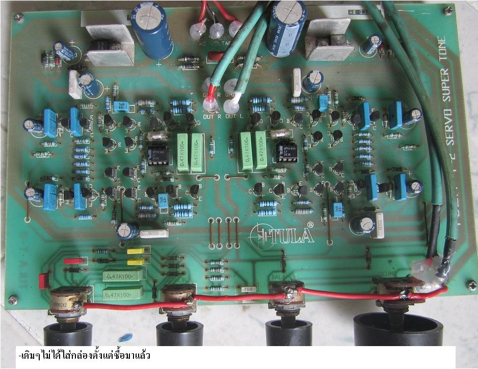 ขาย ชุดเครื่องเสียง TULA มือสอง -PowerAmp MosFet M1060MF(60w+60w RMS.) เป็น Direc Cloupling ทำให้เสียงที่ได้ดีกว่าแบบที่ใช่ C Cloupling โดยใช้วงจร DC SERVO Control เป็นตัวคอยตรวจสอบระดับแรงดันไฟตลอดเวลา -ภาค Power Supply ใช้หม้อแปลง 5 Ampเต็มๆ และใช้ Capacitor ขนาด 10,000ไมโครฟารัด 80โวลต์ ถึง 4 ตัว รองรับเสียงเบสหนักๆ สบาย -มีวงจรป้องกันลำโพงคุณภาพดี ความเร็วสูงใช้ Chip Comparator ของแท้ ส่วน Relay ขาชุบทองของ OMRON 20Amp ตัวใหญ่ 2ตัว ซึ่งมีค่าความต้านทานน้อยมาก -Tone Control T-2 SERVO Super Tone วงจรถูกออกเป็น Direc Cloupling เช่นกัน จึงเข้ากันได้อย่างดีกับ PowerAmp MosFet M1060MF
