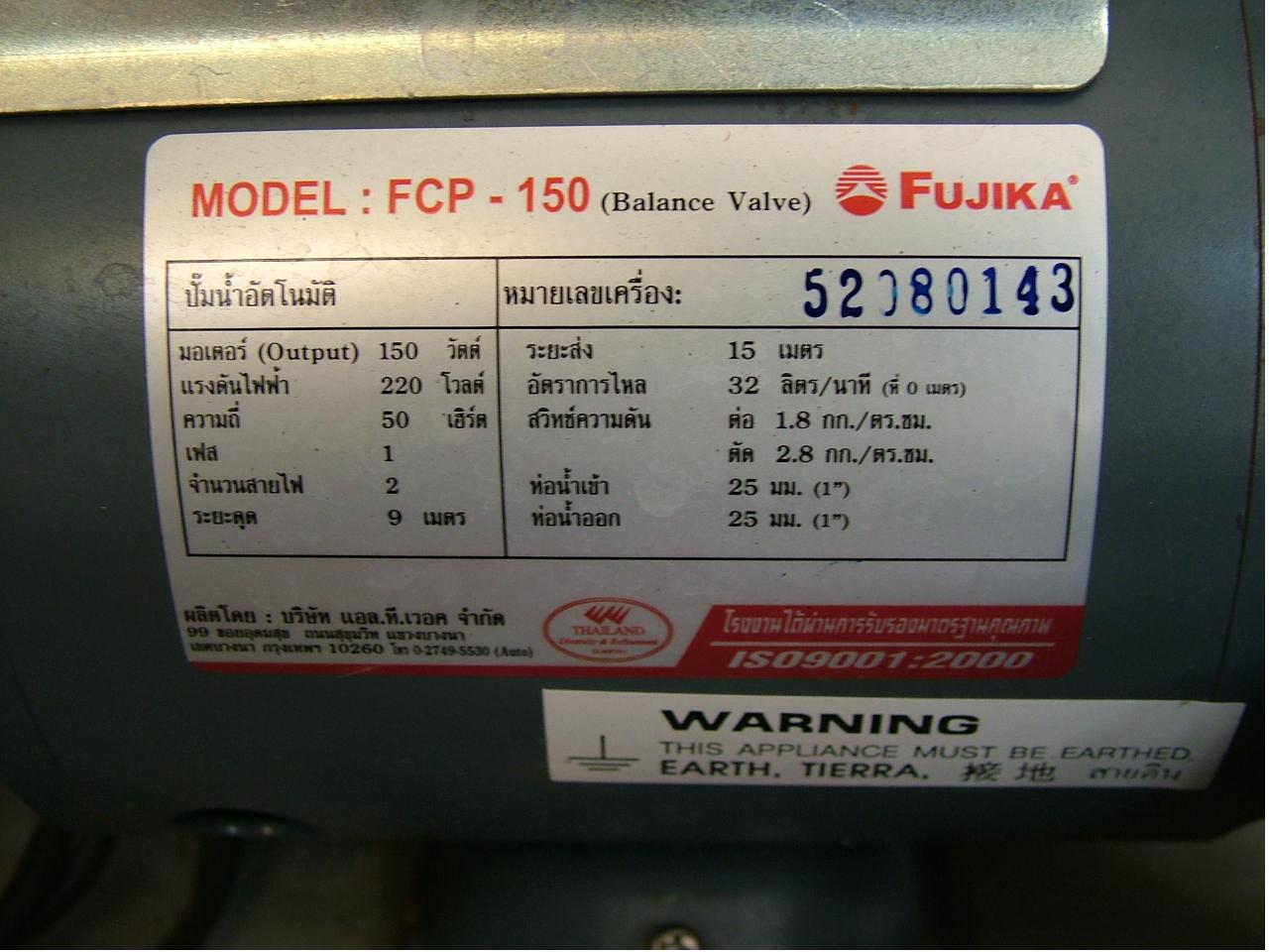 ปั๊มน้ำแบบอัตโนมัติแรงดันคงที่ยี่ห้อ FUJIKA รุ่น FCP-150 มือสอง 1900 บาท