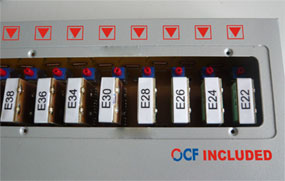 - มี OCF ใส่มาภายในเครื่องโดยสามารถเปลี่ยนช่องได้ด้วยการถอดน๊อตที่ช่องหน้าต่าง แล้ว ดึงตัว OCF ออกมาได้เลยทำให้สะดวกและรวดเร็วมากยิ่งขึ้น ค่า OCF มาตรฐานที่มาในชุด รวม 14 ช่อง มีเลือก 2 รุ่น คือ 1. 22, 24, 26, 28, 30, 34, 36, 38, 40, 42, 44, 46, 48, 50 2. 34, 36, 38, 40, 42, 44, 46, 48, 50, 52, 54, 56, 58, 60