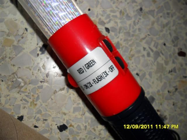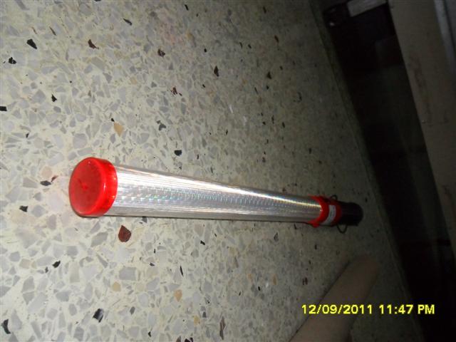 มี 2 สี ในตัวเดียว น้ำเงิน แดง ใช้แบต Size D (ก้อนใหญ่) จำนวน 2 ก้อน ตัวกระบองเป็นสีขาวสะท้อนแสง กระบองไฟตัวนี้ให้ความสว่างมากกว่า กระบองไฟจราจรทั่วไป ผลิตจากประเทศสหรัฐอเมริกา