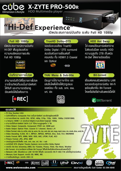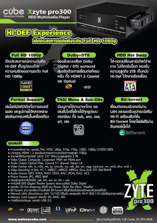 ขาย HD Media Player ยี่ห้อ CUBE PROรุ่น 300,500 และ 320ราคาถูกประกันศูนย์ 2ปี