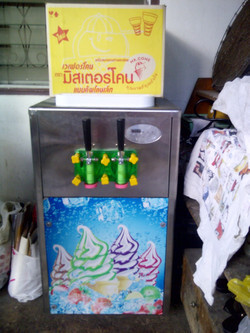 ขายเครื่องทำไอศกรีม ผ่านการใช้งานแค่ครั้งเดียว สนใจติดต่อ 081-3371486 แถมแป้ง 3 ถุง โคน 1 ลัง ขาย 20,000 บาท