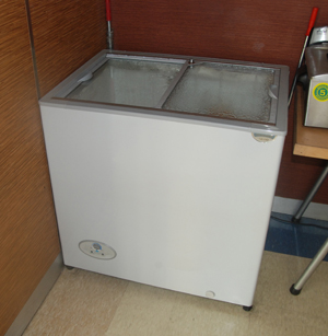 ตู้แช่แข็ง (ไอศครีม) Sanyo รุ่น SF-C695ST สีขาว ฝาปิดกระจกด้านบน ความจุ 184 ลิตร (6.5 คิว) สภาพ 90%