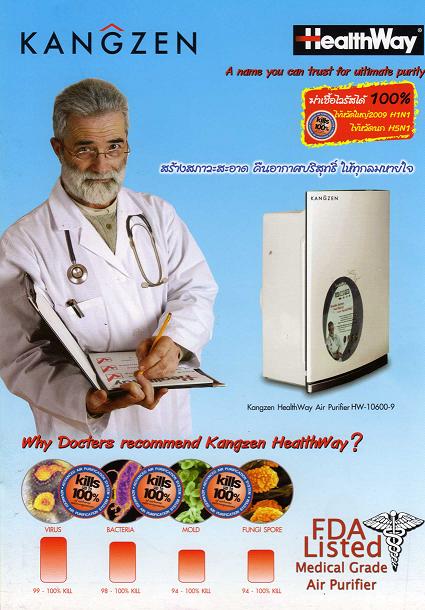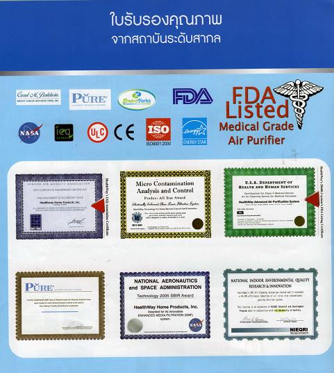 เครื่องฟอกอากาศHEALTHWAYฆ่าเชื้อไวรัส (รวมถึง H1N1 และH5N1) ได้ 99 – 100% , ฆ่าเชื้อแบคทีเรีย ได้ 98 – 100%, ฆ่าเชื้อรา ได้ 94 – 100% ได้รับรางวัลจากองค์การนาซ่า มีจำหน่ายแล้วที่นี่ ที่ดีที่สุดในโลก HEALTHWAY HW-10600-9 เทคโนโลยีการฆ่าเชื้อโรคที่กองทัพสหรัฐใช้