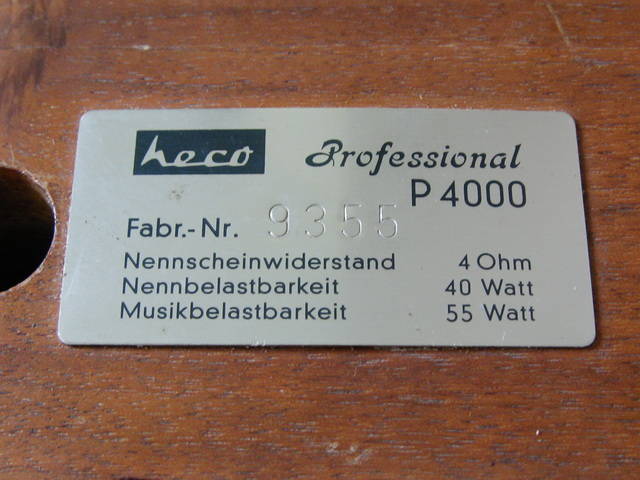 ลำโพง heco Professional P4000 ขนาดกว้าง 25.5ซม. ลึก 20ซม. สูง 47ซม. หนักข้างละ 25กก. ตู้ไม้ ดิบๆ หนักๆ ลำโพง 3ทาง ตู้ปิด ตะแกรงหน้าอลูมิเนียม MADE IN GERMANY ขาย 7,200บาท แดง 085-2434448