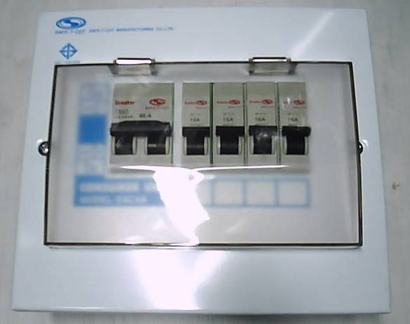 ต้องการขายตู้CONSUMER UNIT ยี่ห้อ SAFE-T-CUT แบบอเมริกา4ช่อง รุ่นSCT4A(เมน45ampลูก16amp)ของใหม่100%ราคา1320.-ติดต่อ 022512637 พรเทพ