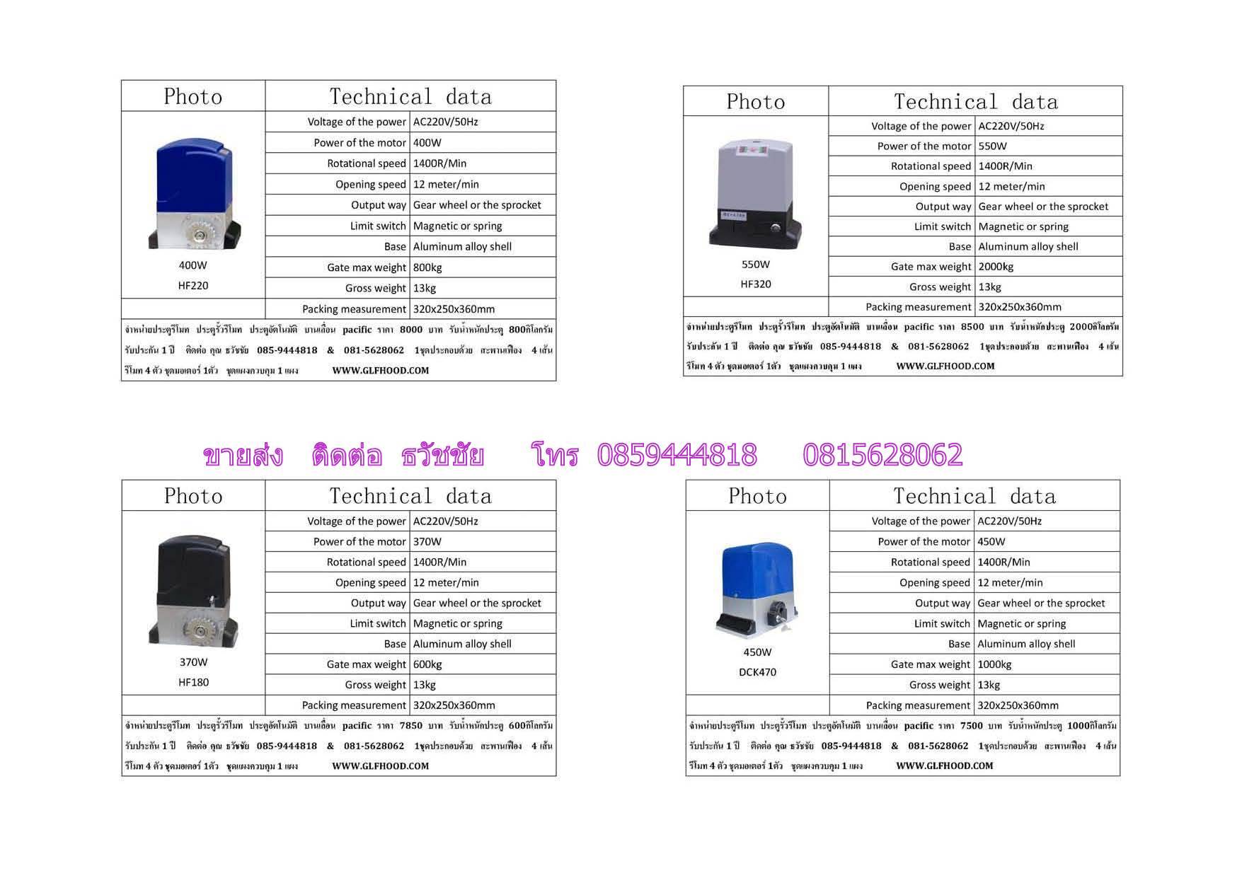 จำหน่ายประตูรีโมท ประตูรั้วรีโมท ประตูอัตโนมัติ บานเลื่อน PACIFIC DCK470Y ราคา 7,500 บาท รับน้ำหนักประตู 600-1000 กิโลกรัม รับประกัน 1 ปี บริการหลังการขาย สอบถามรายละเอียดเพิ่มเติมได้ที่ คุณธวัชชัย เบอร์โทร 085-9444818 และ 081-562-8062 ราคาขายส่