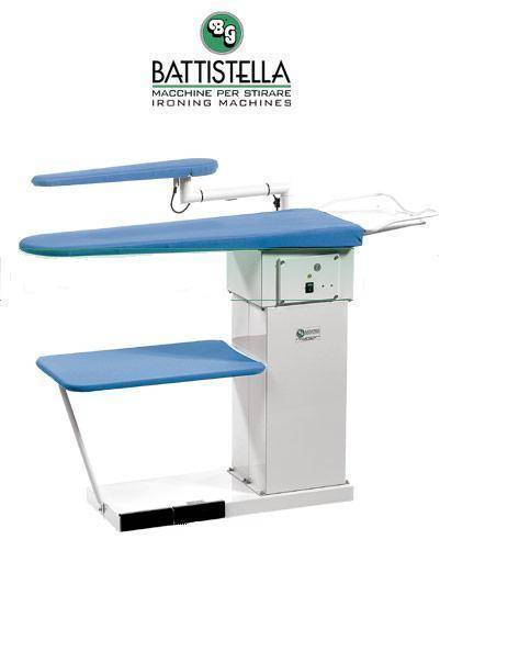 โต้ะดูดไอน้ำBG(BATTISTELLA) กระดานรีดผ้ามีความร้อนและลมดูด รองรีดแขนมีความร้อนความร้อนและลมดูด เป็นโต๊ะสูญญากาศพร้อมแขนรองรีดโต๊ะรีดผ้าเอนกประสงค์สามารถรีด กางเกง เสื้อผ้าสำเร็จรูปต่างๆ ได้ทุกชนิด มีคุณลักษณะเหมาะในการรีดด้วยเตารีดไอน้ำ โต๊ะช่วยดูดความชื้นจากเตารีดไอน้ำ จึงทำให้เสื้อผ้าแห้งไม่เกิดอาการอับชื้น อีกทั้งทำให้เสื้อผ้าที่รีดไม่คืนตัว เหมาะสำหรับร้าน ซักอบรีด การ์เม้นท์ ลอนดรี้ และงานเสื้อทุกชนิดได้งานรวดเร็วและประหยัดไฟ
