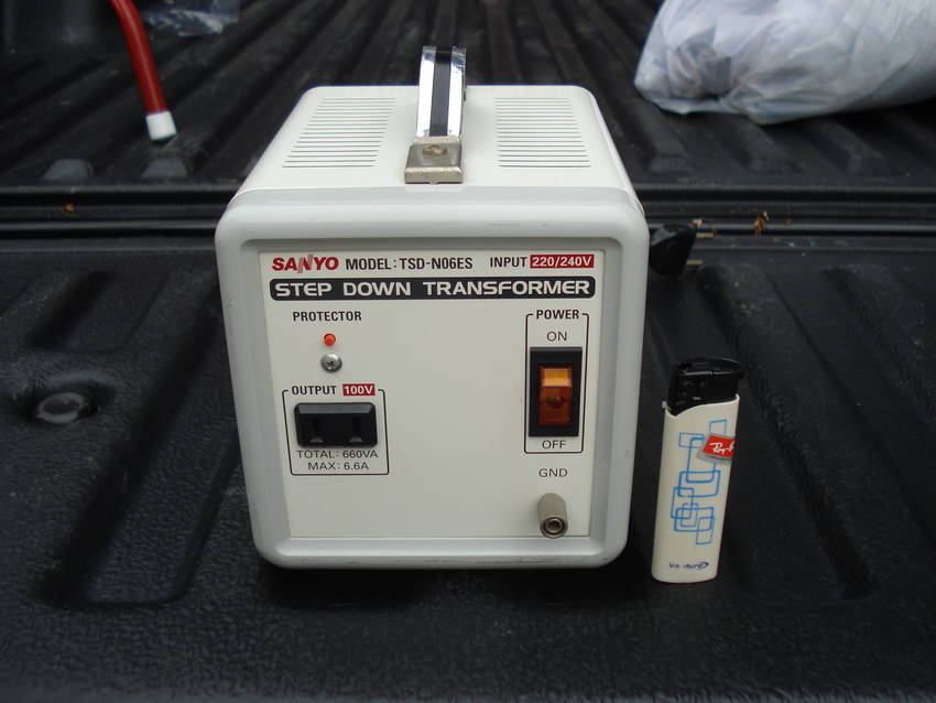 หม้อแปลงไฟฟ้า SANYO แปลงจากไฟฟ้า 220 v เป็นไฟฟ้า 100-110- v คนญี่ปุ่นย้ายกลับเลยขายต่อมา ใช้งานได้ปกติ