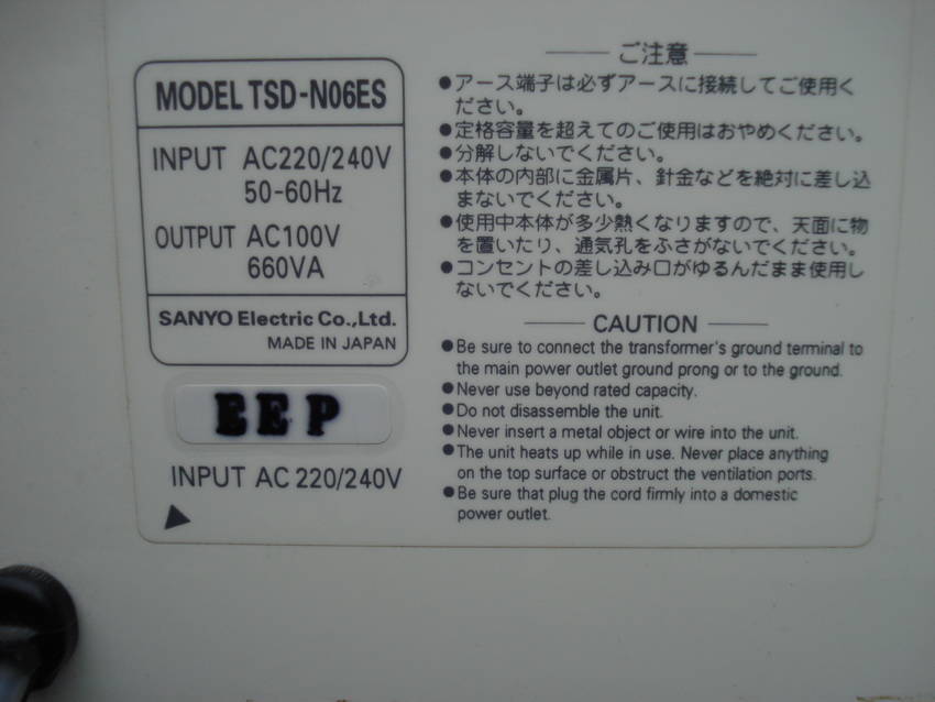 ขายหม้อแปลงไฟฟ้า SANYO แปลงไฟฟ้าจากไฟ 220 v เป็นไฟฟ้า 100-110 v