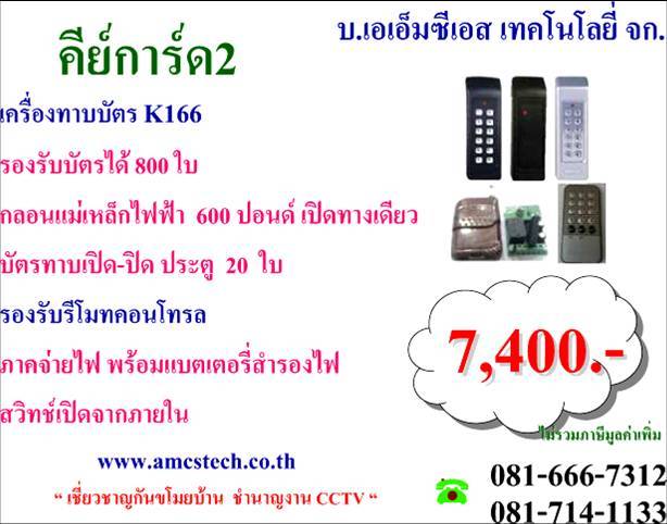 K-166 เครื่องทาบบัตร มีรีโมต เปิดประตูได้ พร้อมบัตร ราคาชุดละ 7,400.00 บาท