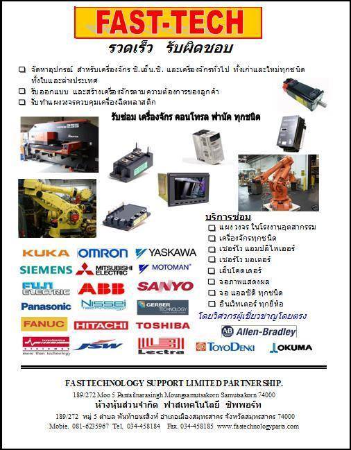 *รับซ่อมเครื่องจักร อุปกรณ์เครื่องจักร ทุกชนิด *รับขนย้ายเครื่องจักรทั่วประเทศ *รับออกแบบ และสร้างเครื่องจักรตามความต้องการของลูกค้า *รับทำแผงวงจรควบคุมเครื่องฉีดพลาสติก มือถือ : 081-6235967 (K. สมบัติ) บริษัท : 034-458184 Fax : 034-458-185 E-mail : [email protected] Websit : www.fasttechnologyparts.com