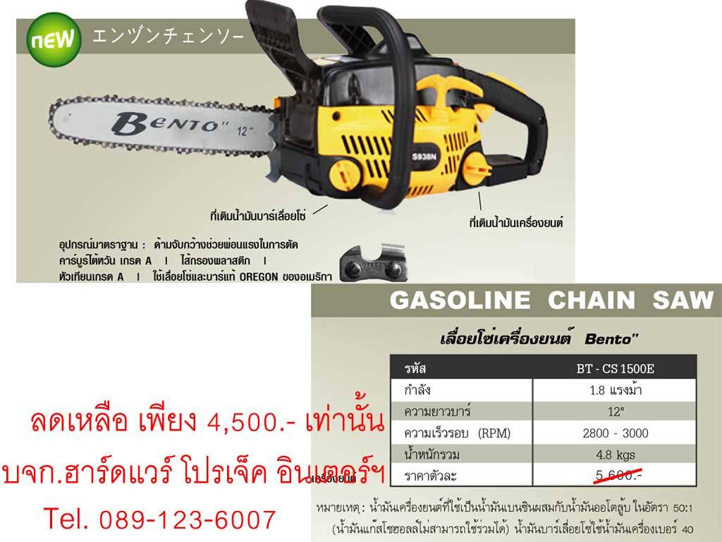 จัดโปรโมชั่นลดราคา เเนะนำสินค้าใหม่ hpi นำเสนอ เลื่อยโซ่เครื่องยนต์ BT-CS1500E BENTO