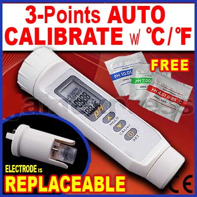 มิเตอร์วัดกรดด่าง และอุณหภูมิ เปลี่ยนหัววัดได้, Auto Calibrate ฟรี! Buffer Powder 4, 7, 10