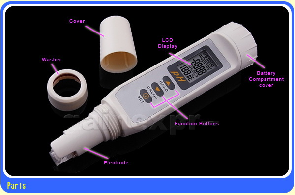 - ความละเอียด : pH: 0.01, อุณหภูมิ : 0.1°C/°F