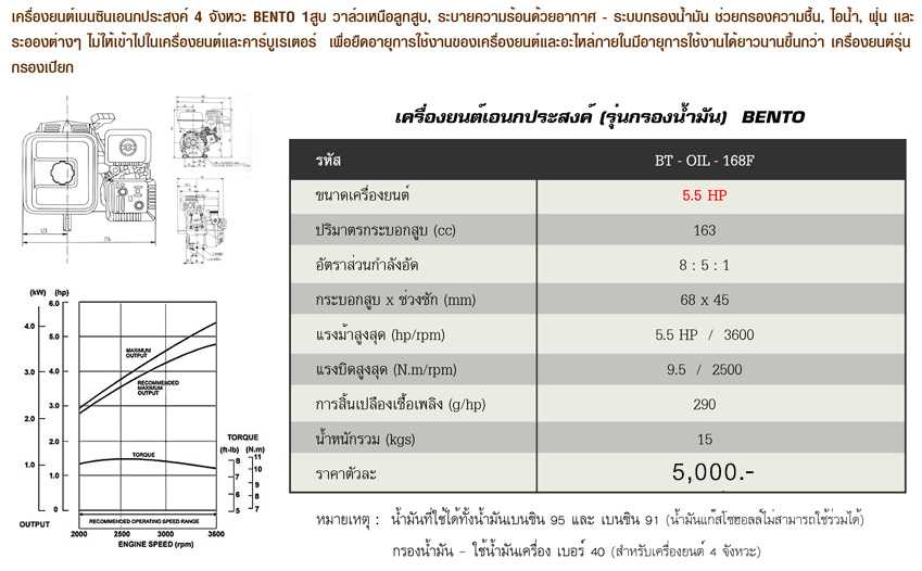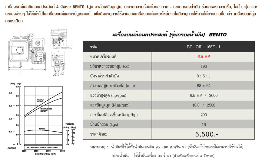 www.hpi.co.th เครื่องยนต์อเนกประสงค์ 5.5HP,6.5HP BT-OIL-168F,BT-OIL-168F-1 BENTO