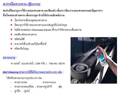 •ไม่มีส่วนผสมของ Chlorinated Solvent ซึ่งจะทำให้สายพานเสื่อมสภาพ