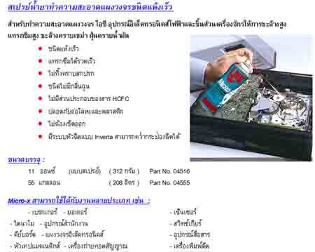 Micro-x ใช้สำหรับขจัดคราบฝุ่นและน้ำมันในส่วนที่ละเอียดอ่อนของแผงวงจร และชิ้นส่วนอิเล็คทรอนิคส์ Micro-x