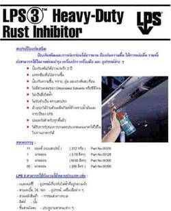LPS 3 Heavy-Duty Rust Inhibitorสเปรย์ป้องกันสนิมชนิดฟิล์มแวกซ์ป้องกันสนิมและการกัดกร่อนได้ยาวนาน ถึง 2 ปีป้องกันความชื้นให้การหล่อลื่นรวมทั้งยังสามารถใช้ในงานซ่อมบำรุง,เครื่องจักร, เครื่องมือและอุปกรณ์ต่างๆ