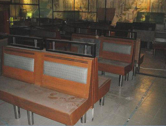 ต้องการขาย ที่นั่งร้านอาหาร (ไม่มีหน้าโต๊ะกลาง) สภาพ 90% โครงสร้างทำจากไม้แท้+ไม้อัด ขาทำจาก เสตนเลสอย่างดี เหมือนในภาพ มีอยู่ 52 ตัว (หน้าหลังติดกันนับ 1 ตัว) เหมาไปเปิดร้านอาหารได้สบาย ราคาตอนทำมารวม 500000 บาท ต้องการขายเหมา ราคาถูก