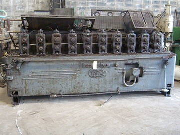 Rollforming Machine by Tishken 2", s/n: 3523-350, PLC Allen bradley control, made in Detroit, USA, 10 stand roll former, 2" shaft dia, 12" pitch, 8" roll space, 20HP44000, space: 4x1.5x2m, 15000lb