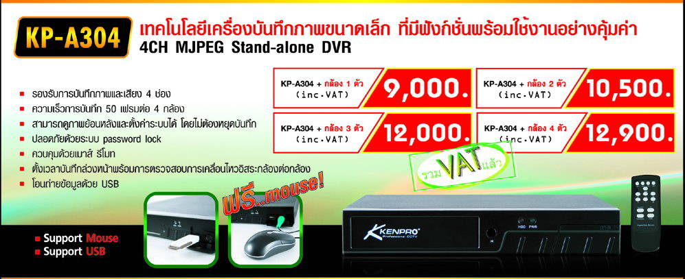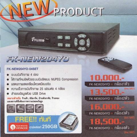 (หมายถึงว่า สินค้าที่ท่านซื้อจะไม่ถูกทิ้งการบริการ การซ่อม บริษัทไม่ปิดตัวลงตามอารมณ์ของเจ้าของร้าน) รับข้อเสนอดีๆ ราคาโดนๆ *** พร้อมรับกรมธรรม์ประกันภัยของหาย จากกรุงเทพประกันภัย *** จากชุดโปรโมชั่นกล้องวงจรปิด FUJIKO อาทิเช่น - ชุดกล้อง 1 ตัวพร้อมเครื่องบันทึก ราคาเริ่มต้น 10,000 บาท - ชุดกล้อง 4 ตัวพร้อมเครื่องบันทึก ราคาเริ่มต้น 18,500 บาท - ชุดกล้อง 4 ตัวพร้อมเครื่องบันทึกภาพ Realtime ดูภาพผ่านอินเตอร์เน็ตได้ ราคาเริ่มต้น 26,000 บาท - ชุดกล้อง 8 ตัว พร้อมเครื่องบันทึก ดูภาพผ่านอินเตอร์เน็ตได้ ราคาเริ่มต้น 38,000 บาท - ชุดกล้อง 16 ตัว พร้อมเครื่องบันทึก ดูภาพผ่านอินเตอร์เน็ตได้ ราคาเริ่มต้น 65,000 บาท นอกจากนี้ ยังมีสินค้าราคาประหยัด ภายใต้แบรนด์ KENPRO เป็นสินค้าจากบริษัทเดียวกัน มาตรฐานการบริการเดียวกันกับ FUJIKO ราคาใกล้เคียงกับกล้องจีนคุณภาพต่ำตามตลาดคลองถม ***แล้วท่านจะทนเสี่ยงกับการหนีหายของร้านเหล่านั้นทำไม*** ตัวอย่างชุดโปรโมชั่น - ชุดกล้อง 4 ตัวพร้อมเครื่องบันทึก ราคาเริ่มต้น 12,900 บาท - ชุดกล้อง 4 ตัวพร้อมเครื่องบันทึก มีจอ LCD ในตัว ประหยัดเนื้อที่สุดๆ ราคา 19,900 - 25,000 บาท - ชุดกล้อง 8 ตัว พร้อมเครื่องบันทึก ดูภาพผ่านอินเตอร์เน็ตได้ ราคาเริ่มต้น 27,000 บาท - ชุดกล้อง 16 ตัว พร้อมเครื่องบันทึก ดูภาพผ่านอินเตอร์เน็ตได้ ราคาเริ่มต้น 40,000 บาท ปลอดภัยยิ่งขึ้น สัญญาณเตือนภัยขโมย CANIS-SR ราคาเริ่มต้น 11,900 บาท พร้อมติดตั้ง แจ้งเหตุทางโทรศัพท์ 3 เลขหมาย สำหรับสำนักงาน ห้องเก็บของ บ้าน ร้านค้า ที่ท่านไม่มีใครนอนเฝ้า