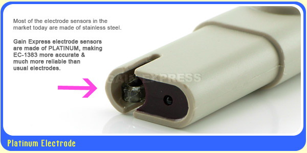 มิเตอร์วัดค่าความเข้มข้นของสารละลาย(EC) รุ่นEC-1383 รวดเร็วและแม่นยำอุปกรณ์Sensor Electrode ของหัวรุ่นนี้ไม่เหมือนหัวรุ่นอื่นๆทั่วไปเพราะเป็นsensor platinum electrode ที่มีประสิทธิภาพสูงกว่าวัดค่าได้แม่นยำและมีความทนทานมากกว่ารุ่นทั่วไป