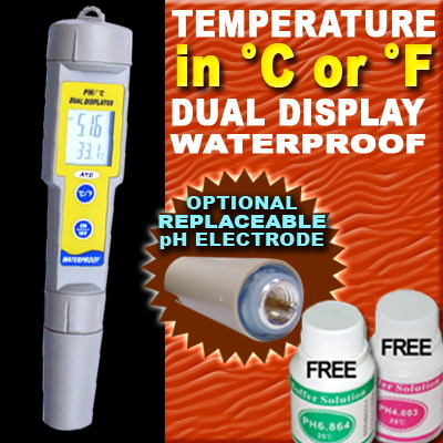 Waterproof pH Meter, Dual Temperature °C or °F with replaceable pH Electrode (PH-035)
