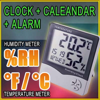ไฮโกรมิเตอร์ (Hyfrometer) รุ่น IR-807 มีฟังก์ชั้น การวัดความชื้นสัมพัทธ์ อุณหภูมิอากาศ ปฏิทิน และนาฬิกา สามารถตั้งปลุกได้ การวัดอุณหภูมิสามารถเลือกหน่วยเป็นองศา C หรือ F ขณะที่การวัดความชื้นอากาศหน่วยเป็น %RH
