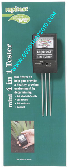 เครื่องวัด Rapitest 4 in 1 รุ่น 1818 เป็นเครื่องมือวัดที่เหมาะกับงานเกษตรกรรม ใช้งานง่ายไม่ต้องใช้แบตเตอรี่ บนตัวเครื่องมีสวิทช์สำหรับเลือกใช้งาน ในการวัดค่าต่างๆ ถึง 4 อย่างคือ 1. ค่าความกรดด่างของดิน (ค่า pH) 2. ค่าแสง 3. ค่าความชื้นในดิน 4. วัดภาวะเจริญเติบโตของพืช เครื่อวัด Rapitest 4 in 1 สามารถอ่านข้อมูลได้ง่าย ใช้งานได้ทั้งในที่ร่มและกลางแจ้ง และช่วยให้สามารถตรวจสอบเงื่อนไขของ pH ของดิน ,ความชื้นในดินความเข้มแสงและ ระดับไนโตรเจนรวมถึงฟอสฟอรัสและระดับโปแตช ระดับ pH ของดินจะมีผลดี ต่อการใช้ประโยชน์จากสารอาหารที่อยู่ในดิน ซึ่งส่งผลต่อการเจริญเติบโตของพืช