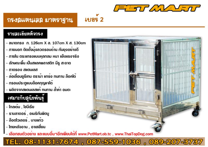 กรงสุนัขสแตนเลส เกรดA ไม่เป็นสนิม ราคาถูก ส่งฟรี รับบัตรเครดิต เน้นคุณภาพ (สินค้ารับประกัน) www.petmart.ob.tc
