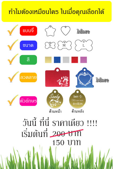 ยินดีต้อนรับสู่สังคม iPet Tag จี้ห้อยคอสัตว์เลี้ยง“iPet Tag” นั้นสร้างความแตกต่างให้กับสัตว์เลี้ยงของคุณ ผ่านทางการ CusToMize จี้ห้อยคออลูมิเนียมแบบพิเศษที่มีความสวยงาม บวกกับความแข็งแรงที่มาพร้อมกับน้ำหนักที่เบา โดยภาพที่ถูก customized บนจี้นั้นจะไม่มีการเลือนหาย เมื่อโดนแสง ไม่มีการขึ้นสนิมเมื่อโดนน้ำ มีความติดแน่นทนนาน เนื่องจากเราใช้เทคโนโลยีเลเซอร์ใหม่ล่าสุด ยิงไปบนผิวงานโดยตรง ทำให้ได้ภาพที่คมกริบ มีรายละเอียดสูง และติดทนถาวร