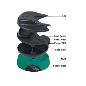 เครื่องให้อาหารสัตว์เลี้ยงอัตโนมัติ รุ่น PF-05A มีช่องให้ใส่อาหารได้ 4 มื้อ ทำจากพลาสติก ABS หน้าจอ LCD แยกชิ้นส่วนออกมาทำความสะอาดได้ง่าย สามารถให้ได้ทั้งอาหารแห้ง และอาหารเปียก เหมาะสำหรับสุนัข, แมว, และสัตว์อื่นๆ ใช้ได้ทั้งสัตว์พันธุ์ใหญ่ และพันธุ์เล็ก พร้อมฟังก์ชั่นพิเศษสามารถบันทึกเสียง ไว้ใช้สำหรับเรียกสัตว์เลี้ยงมากินอาหาร