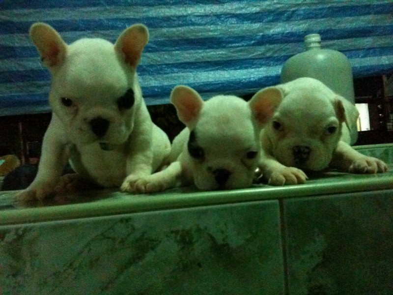 ขายลูก French bulldog สีขาวดำ ผู้ 1 เมีย 3 มี jack ที่ตา 2 ขาวล้วน 2 เกิด 3 กันยายน วัคซีนแล้ว ราคาต่อรองกันได้ สนใจติดต่อ 087-5710676 K.ดุลย์