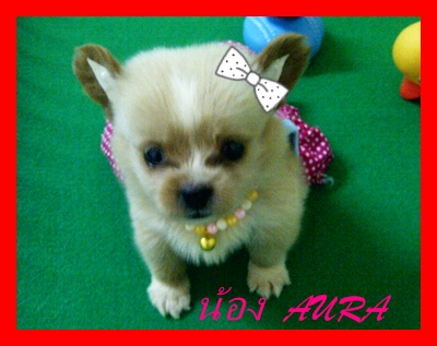 น้อง ออร่า ชิวาวาขนยาว เพศเมีย อายุ 2 เดือน สีครีมน้ำตาล มาร์คขาว ใส่ถุงเท้า 4 ข้าง โครงสร้างดี ตัวสั้นกลม หน้าสั้นหัก หัวโหนกสวย ขาสั้น น่ารักมากๆ แข็งแรง ขี้เล่น ร่าเริง มีขี้อ้อนนิดหน่อย ทานอาหารเกรดพรีเมี่ยม ถ่ายพยาธิแล้ว 1 ครั้ง ราคา 9500 บาท เท่านั้น สนใจติดต่อขอดูตัวจริงได้ที่ 08-9898-0400 น้องอยู่ กทม . คร้า