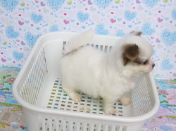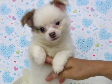 ขายชิวาวาขนยาว สีขาว-น้ำตาล หัวกลมโต หน้าหัก สต๊อปดี ขนฟูๆๆ (จากชิวาวาเฮ้าส์)