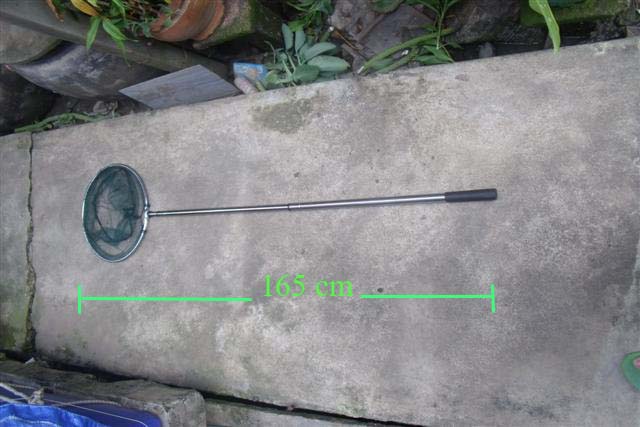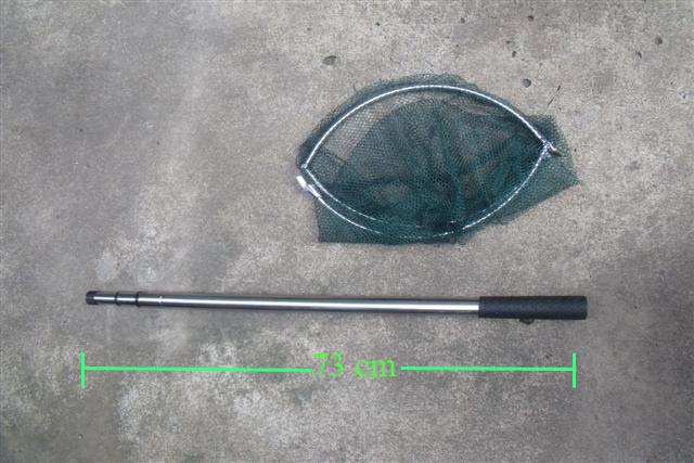 ตัวกระชอนและด้ามเป็นสเตนเลส สามารถถอดแยกจากกันได้ ตัวกระชอนสามารถพับได้ ด้ามสามารถปรับระดับสั้นยาวได้ 3 ช่วงความยาวด้ามรวมกระชอน 214 cm เส้นผ่านศูนย์กลางกระชอน 39 cm (กำลังทำขนาดเพิ่ม)เมื่อแยกส่วนพับเก็บจะเหลือความยาวเพียง 73 cm ตาข่ายเป็นผ้าถัก กว้าง 5 mm ทำจากผ้านิ่มถักนุ่มถนอมเกล็ดปลา