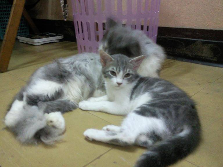 อเมริกันช๊อตแฮร์ลูกผสม 2 ตัว เพศผู้ 1 เพศเมีย 1 ตัว กำลังซนกินอาหารเม็ดได้ขับถ่ายเองได้แล้วสนใจสอบถามได้ครับ อายุ 3 เดือน 15 วัน